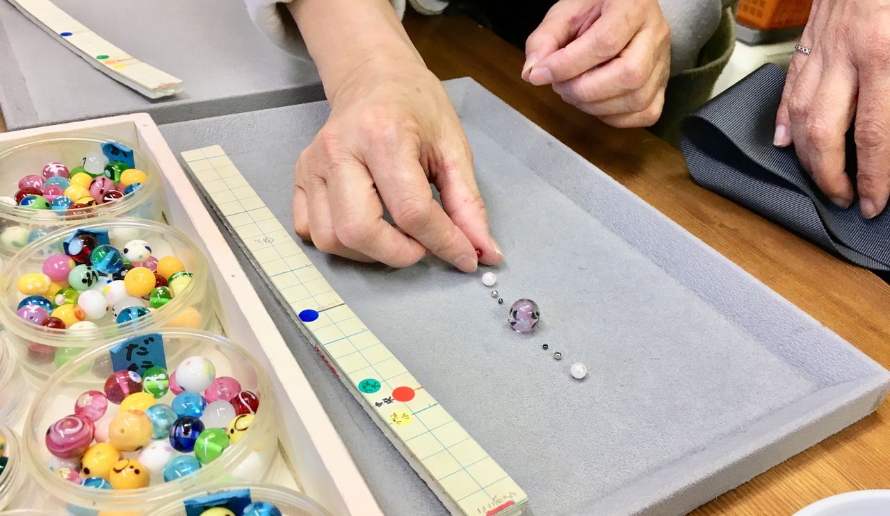 まずはトンボ玉体験のお客様。